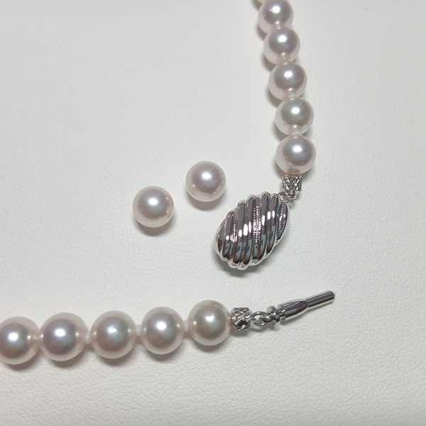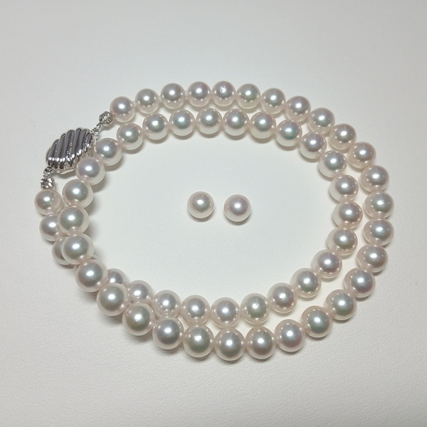 三重ブランド 準花珠の高品質アコヤ真珠ネックレスセットです。